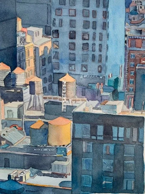 Elizabeth Zeldin, City Scape: Early March Chelsea A.M, Watercolor on D’Arches 11” by 8”