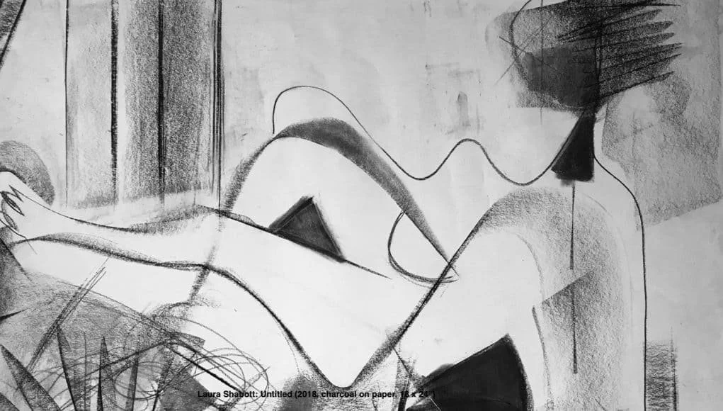 Although, I was primarily impressed by the bold colors in all three exhibits, it’s worth also mentioning Shabott’s stunning charcoal drawings that demonstrate her artistic energy in its raw form, with joyful lines and curves depicting figures abstracted.